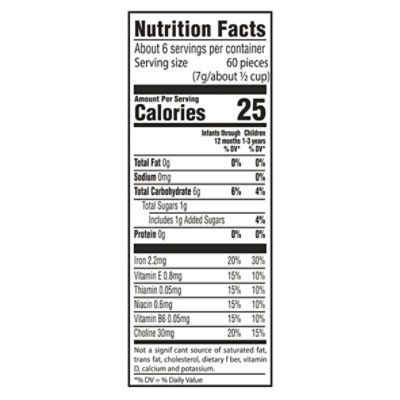 They dissolve easily and are a great source. See More Results 90 Visit Site. Baby puffs nutrition facts Veggie NIACINAMIDE A B VITAMIN ORGANIC CANE SUGAR Dietary Fiber 38g Made with organic whole grains VITAMIN B1 THIAMINE HYDROCHLORIDE.
